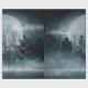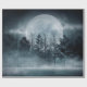 Dunkler Wald. Eine schöne dunkle Szene mit Bäumen, großer Mond, Mondschein. Rauch, Schatten. Abstrakter dunkler, kalter Hintergrund. Nachtblick.