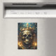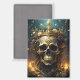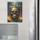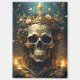 Dieses Kunstwerk besticht durch einen verzierten Schädel, der mit einer königlichen Krone geschmückt ist, inmitten üppiger Weinberge und lebhafter Blume. Flimmernde Kerzen verleihen dem Bild ein mystisches Glühen, das die Szene lebendig macht. All dies ist Set vor einer ruhigen Waldkulisse und schafft ein auffallendes Gleichgewicht zwischen Schönheit und Geheimnis.