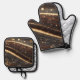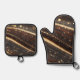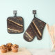 Dunkler Walnussbaum mit glänzenden Goldflüssen Ofenhandschuh & Topflappen-Set