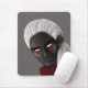 Dunkle Zauberer-Mousepad mit digitaler Abbildung eines männlichen Charakters mit langen weißen Haaren, dunkler Haut und Augentätowierungen in Rot, Schwarz und Grau.