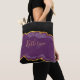 Abstrakte Tasche mit schwarzer, dunkler lila und goldener Farbe. Text ist anpassbar, sodass Sie Ihren eigenen Namen oder ein Angebot hinzufügen können.