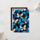 Realistisches, blaues und weißes Schmetterlingsmuster auf schwarzem Hintergrund.
