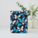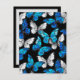 Realistisches, blaues und weißes Schmetterlingsmuster auf schwarzem Hintergrund.