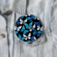 Dunkles Nahtloses Muster mit blauen Schmetterlinge Button