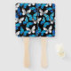 Realistisches, blaues und weißes Schmetterlingsmuster auf schwarzem Hintergrund.