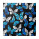 Realistisches, blaues und weißes Schmetterlingsmuster auf schwarzem Hintergrund.