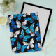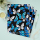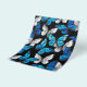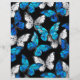 Realistisches, blaues und weißes Schmetterlingsmuster auf schwarzem Hintergrund.