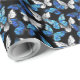 Realistisches, blaues und weißes Schmetterlingsmuster auf schwarzem Hintergrund.