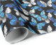 Realistisches, blaues und weißes Schmetterlingsmuster auf schwarzem Hintergrund.