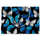 Realistisches, blaues und weißes Schmetterlingsmuster auf schwarzem Hintergrund.