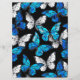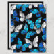 Realistisches, blaues und weißes Schmetterlingsmuster auf schwarzem Hintergrund.