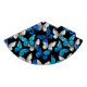 Realistisches, blaues und weißes Schmetterlingsmuster auf schwarzem Hintergrund.