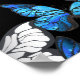 Realistisches, blaues und weißes Schmetterlingsmuster auf schwarzem Hintergrund.