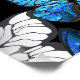 Realistisches, blaues und weißes Schmetterlingsmuster auf schwarzem Hintergrund.