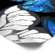 Realistisches, blaues und weißes Schmetterlingsmuster auf schwarzem Hintergrund.