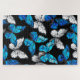 Dunkles Nahtloses Muster mit blauen Schmetterlinge Puzzle