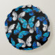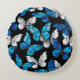 Dunkles Nahtloses Muster mit blauen Schmetterlinge Rundes Kissen