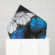 Realistisches, blaues und weißes Schmetterlingsmuster auf schwarzem Hintergrund.