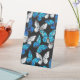 Realistisches, blaues und weißes Schmetterlingsmuster auf schwarzem Hintergrund.