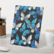 Realistisches, blaues und weißes Schmetterlingsmuster auf schwarzem Hintergrund.