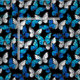 Realistisches, blaues und weißes Schmetterlingsmuster auf schwarzem Hintergrund.