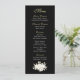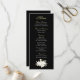 Dieses dunkelschwarze Menü mit goldenen und weißen Schriften ist einfach elegant. Ein Blumenstrauß schmückt den unteren Teil der Speisekarte. Die Namen der Paare sind auf der Rückseite mit einem goldenen Ampersand. Ideal für jeden Anlass ... alle Felder können für Ihr Mittag- oder Abendessen angepasst werden. Optionale Namen auf der Rückseite für Hochzeiten und Jahrestage