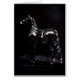 Ein schöner friesischer Stallion stehend im Mondschein, hörend zur Nacht.