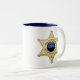Dünne blaue Linie - glühende Schaltfläche und Gold Zweifarbige Tasse