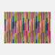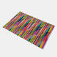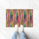 Diese Türmatte hat ein geometrisches Design von bunten Streifen vertikal laufen.