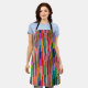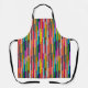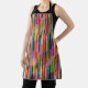 Diese Schürze hat ein geometrisches Design aus bunten Streifen, die vertikal verlaufen.