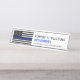 Eine kundenspezifische dünne blaue Linie Flaggeschreibtischnummernschild mit einem weißen Hintergrund orientiert für alle relevante Information Ihrer Stellenbezeichnung und Position.