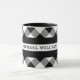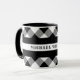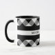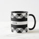 Haben Sie Ihre Morgenschale Kaffee in der Art mit der personalisierten Kaffee-Tasse. Dieses Ausrüstungsbeschreibungen eine dünne weiße Linie über der Mitte mit einem Namen in schwarzem typogrpahy, damit Sie einfaßten durch Schwarzes mit einem trendy Schwarzweiss-Büffel personifizieren, der eine Touch von rustikalem hinzufügend kariert ist. Das perfekte Geschenk für EMS- und EMT-Erstversorger. Entworfen durch Künstler ©Susan Coffey.