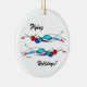 Zwei abstrakte Schmetterlingsschwimmer sind bereit, durch den Urlaub zu fliegen! Text und Design sind vorne und hinten. Sie können das Design nach Belieben ändern...fügen Sie einen Namen hinzu und ziehen Sie den vorhandenen Text ab. Ändern Sie den Schmuck und fügen Sie die Hintergrundfarbe! Geben Sie Ihren Lieblings-Fliegenschwimmern einen fröhlichen Urlaubssornament. Oder vielleicht will Ihr Fliegenschwimmer, ihrem Trainer oder einem Teamkollegen zu danken! Viele lustige und erschwingliche Geschenke für Teamkollegen, Trainer und schwimmende Eltern finden Sie unter zazzle.com/swimmuse.