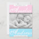 Lässig und elegant einfach, dieser duonfarbene Hintergrund und die stilvolle Typografie Set die Bühne für eine schöne Zwillingsgeburtserklärung für Ihre neuen Freudenbündel. Diese Karte ist eine schöne Möglichkeit, die neuen Babys Familie und Freunden vorzustellen.