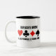 Sind Sie das Bridge-Kartenspiel sowohl als flüchtiger Moment in Ihrem Leben, als auch als allumfassende Leidenschaft? Duplikate Bridge Spieler werden diese Tasse mit einem Wry Bridge Spaß und den vier Card Anzügen genießen. Sprichwort sagt alles: "Duplikatbrücke ist ein ephemeriales & ewiges Spiel". Lassen Sie andere die Widersprüche innerhalb des Bridge-Spiels heute mit einer Dosis Brücken-in-Wange-Bridge-Haltung in zweifacher Weise betrachten!