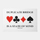 Machen Sie anderen eine Doppelnahme mit einer doppelten Bridge-Einstellung, wenn Sie das nächste Mal diese Türmatte mit den vier Karten-Anzügen zusammen mit dem Sprichwort "Duplikatbrücke ist ein Staat des Verstandes" benutzen. Erinnern Sie sich an die Tür für jeden doppelten Bridge Club!