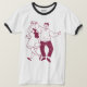 Dieses minimalistische T - Shirt-Design zeichnet sich durch eine charmante Line-Art-Illustration aus, in der ein paar fröhlich zusammen tanzen. Die fließenden Linien und die lebendige Maronfarbe vermitteln ein Gefühl von Wärme, Verbundenheit und sorgloser Zufriedenheit. Dieses Design ist perfekt geeignet, um Liebe, Beziehungen und die Schönheit geteilter Momente zu feiern. Es verleiht jedem Outfit eine spielerische, aber stilvolle Touch.