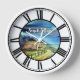 Mit dieser atemberaubenden Wanduhr können Sie das Ambiente Ihres Wohnraums verbessern. Die Wanduhr basiert auf meinem Aquarellbild einer friedlichen Küstenstadt in der Nacht unter dem sanften Mondlicht. Bewundern Sie die schöne Hütte mit Strohdach direkt am Meer, eingebettet in eine bezaubernde Küstenwanderung mit Blick auf den Abend des Ozeans. Lass diese Uhr bringt dich jedes Mal, wenn du die Zeit Karo, zu einem ruhigen Badeurlaub.