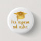 Per aspera ad astra Lateinischer Spruch Schwarzes Skript Abschlussmütze Knopf. Feiern Sie den Erfolg des Abschlusses mit diesem eleganten personalisierten Stil Knopf mit einer goldfolienimitierten Abschlussmütze und dem inspirierenden lateinischen Ausdruck Per Aspera Ad Astra („Durch Härten zu den Sternen“). Ein bedeutungsvolles Andenken für Absolventen, Oberstufenschüler, Collegestudenten und stolze Familien. Perfekt als Partygeschenk zum Abschluss, Schließfachmagnet, Kühlschrankdekoration oder kleines Geschenk für Abschlussfeiern an der High School, am College, an der Universität oder beim Masterabschluss.
