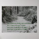 Poster zeigt ein Foto eines Weges durch einen verschneiten Wald und ein Zitat von Robert Frost: "Der Wald ist schön, dunkel und tief..."