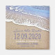 Diese schöne speichern Sie das Datum Magnet verfügt über eine Strandszene mit Sand und Rasen. Es ist der perfekte Weg, um Ihre Hochzeitsdetails zum Thema Strand an Ihre Familie und Freunde zu schicken.