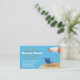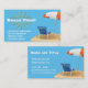 Mustern Sie anziehende helle summery doppelte mit Seiten versehene Visitenkarten mit einem stripy deckchair unter einem Strandschirm, klassische Küstenszene. Klicken fertigt besonders an, wenn Sie die Hintergrundfarbe ändern möchten. Text und Bild auf Front und Rückseite. Schablone ist für ein Küste café, aber diese Visitenkarten sind für jedes mögliches Geschäft durch das Meer oder in Bezug auf Feiertage ideal und reisen.
