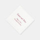 Die Roten Namen und die Servietten der Hochzeitsfeier "Durch die Ewigkeit" strahlen Eleganz und Personalisierung aus. Die Namen der beiden sind in Bordeaux schön geschrieben, ihr Hochzeitsdatum wird in einem klassischen Serif-Schriftart angezeigt, und ein romantischer Satz, der auch in Bordeaux verziert ist, ist ebenfalls verziert.