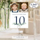 Inklusive verschiedener Fotos der Braut und Bräutigam durch die Jahre für ein unterhaltsames Tischschild für die Hochzeitsgäste. Es macht Spaß, auf dem gleichen Schild ähnliche altersbedingte Fotos zu haben und verschiedene Fotos auf jedem Tisch zu haben, wenn sich die Gäste vermischen. Auf beiden Seiten für zweiseitige Anzeige gedruckt. Die marineblaue Textfarbe kann so geändert werden, dass sie mit Ihrem Farbschema abstimmt, und die Vegetation kann bei Bedarf gelöscht werden. FOTO TIPP: Wählen Sie Fotos mit dem Thema in der Mitte und/oder vor dem Auftragen in ähnliche Formen aus, bevor Sie es hochladen, und/oder verwenden Sie das CROP-Tool in EDIT, um die Platzierung im Vorlagenbereich anzupassen. HILFE: Für Hilfe bei der Modifizierung oder Personalisierung des Designs, bei Farbänderungen, bei der Größenänderung, bei der Übertragung des Designs auf ein anderes Produkt oder wenn Sie die Dinge koordinieren möchten, wenden Sie sich bitte an den Designer, BEVOR er die Bestellung über die Registerkarte Zazzle Chat MESSAGE oder per E-Mail makeitaboutyoustore@gmail.com.