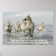Das Zitat-Poster auf Inspiration zeigt wunderschöne weiße Pferde, die durch Wasser galoppieren und zeigt den Bibel Verse Psalm 108:13: "Durch Gott werden wir tapfer sein, denn Er wird unsere Feinde herabsetzen."
