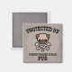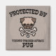 Niedlicher, knackiger kleiner Mops und Kreuzknochen mit "Geschützt durch - bösartig trainierter Angriff Mops" Schrift. Leicht erschütterte Grafik, auf T - Shirt, Hoodies, Karten, Geschenke.