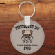 Niedlicher, knackiger kleiner Mops und Kreuzknochen mit "Geschützt durch - bösartig trainierter Angriff Mops" Schrift. Leicht erschütterte Grafik, auf T - Shirt, Hoodies, Karten, Geschenke.