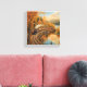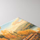 Eine lebendige Herbstlandschaft. Eine lange, kurvenreiche Bahn führt durch eine Waldbrise mit goldgelbem und orangefarbenem Blattwerk. Der Zug selbst ist eine klassische, Vintage Lokomotive mit mehreren Wagen. Im Vordergrund reflektiert ein kleiner See die Herbstfarben und die Passage des Zuges. Die gesamte Szene ruft ein Gefühl der Ruhe und der Schönheit der Natur hervor.