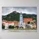Dürnstein ist eine Kleinstadt am Donauufer im Krems-Land-Kreis im österreichischen Staat Niederösterreich. Dürnstein wurde 1192 erstmals erwähnt, als König Richard I. von England in der Burg oberhalb der Stadt von Leopold V., Herzog von Österreich, nach ihrem Streit während des Dritten Kreuzzugs gefangen gehalten wurde. Die Abtei Dürnstein (Stift Dürnstein) wurde 1410 von Canons Regular aus Třeboň gegründet und 1710 im Barockstil wiederaufgebaut. Jeder, der eine Fahrt auf Danube gemacht hat, hat die fantastische blaue Kirche gesehen