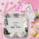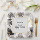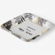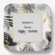 Es ist mit einem Blumenfederleafy-Design in Schwarz, Grau und Gold ausgestattet. Diese Teller und Servietten passen zur Duscheinladung im selben Design.